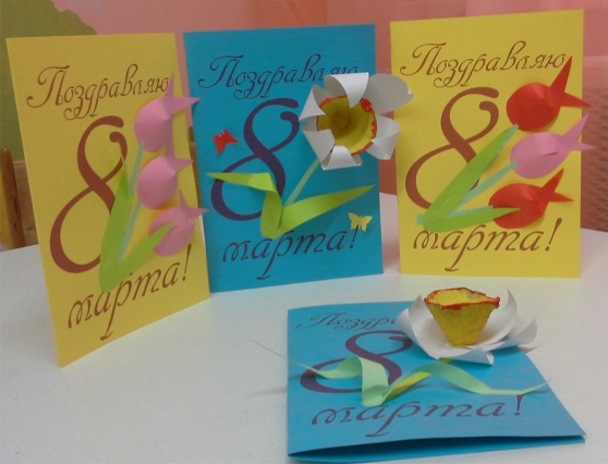 Весна - это время первых цветов после зимы, когда природа просыпается от зимнего сна. Наступает время перемен, положительных эмоций и чувств. Природа оживает, а вместе с ней и оживают наши фантазии и мечты. А какая женщина не любит первые цветы, их аромат будоражит душу, вызывает самые нежные и изящные чувства, передает дыхание весны, первой зеленой листвы, ветра облаков, лучей солнца. Первыми появляются утонченные подснежники, крокусы и гиацинты, затем нарциссы и тюльпаны, ирисы, потом приходит время сирени, флоксов и жасмина. Весенний букет напоминает и тем, для кого он предназначен, о любви в сердце и благородстве, о нежности и мягкости души. А самый любимый человек на свете - мама. Которой хочется подарить всю красоту и нежность весенних цветов. Мои ребята потрудились на славу, и каждый к празднику для своей мамы изготовил открытку с весенними цветами.