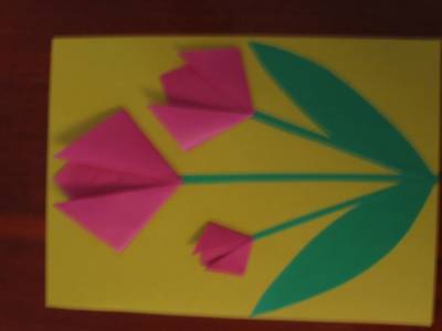 Наклеиваем бутоны на фон. Открытка готова.