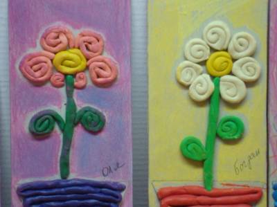 Вчера, мы с ребятами сделали для наших милых мам подарок. На занятии по лепке, при помощи пластилинографии, ребята изготовили свой неповторимый цветочек.