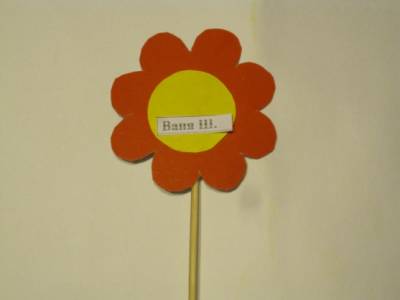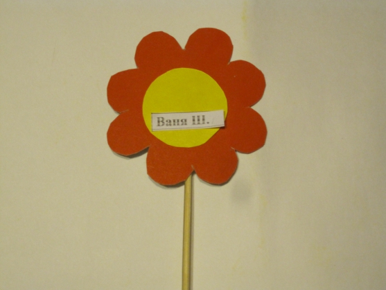 С лицевой стороны цветочка приклеиваем заранее напечатанное имя ребенка.