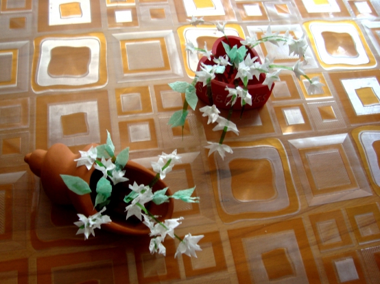 хочу прдставить вашему вниманию поделку из броссового материала. С приходом весны, так хочется цветов! А идея пришла сама собой. Перебирая разные сувениры, захотелось их оживить.