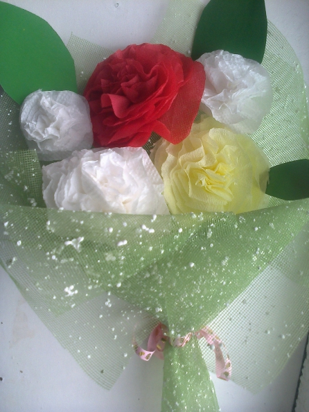 Желательно брать салфетки разных цветов, чтобы получить красивый букет.